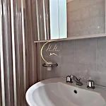 洗澡间有坐浴盆,分开的洗手间 和淋浴.